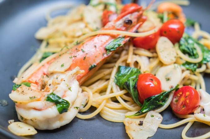 Спагетти по-итальянски с оливками и базиликом